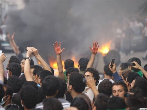 While looking through the archive, reading minute-by-minute reports with dozens of images that accompany them, or viewing countless Facebook albums of the protests, I was confronted with my sudden closeness to these events, and my simultaneous inability to grasp them. Each photograph contained the potential of being every other image that I had seen just seconds earlier: there was no safety in their singularity or framing. Each photograph extends and overlaps into a myriad of others, the dizzying quantity of the images multiplied by the cameras that appear in each one. At the same time, it is impossible to talk about the photographs as a unified whole, as that position would not allow me to acknowledge the power of the multiple individual gazes that have confronted me. A physical sensation of tragedy replaces the urge to locate the event in a specific time a place, to comprehend it historically: the event is now, and it is being moved forward through the power of the photographs – neither singular nor plural – to affect.