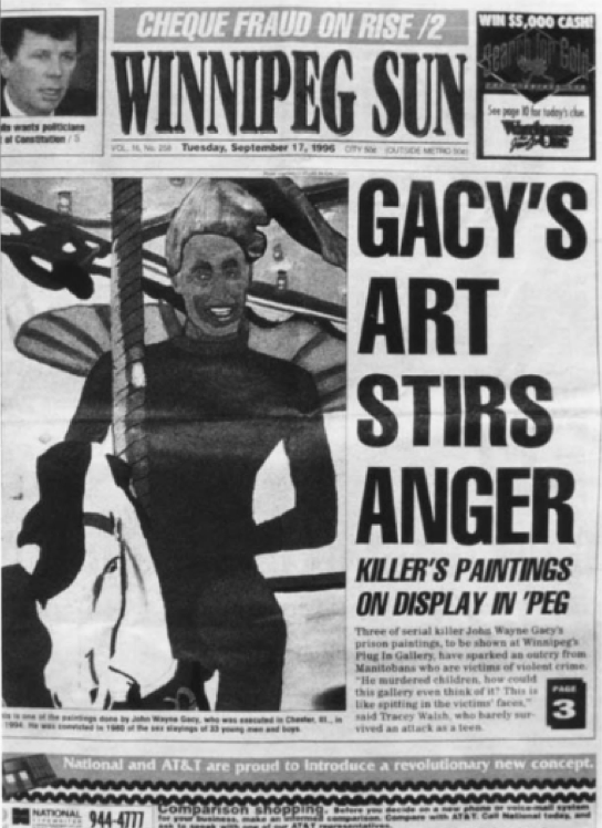 « Gacy's Art Stirs Anger », Winnipeg Sun, 17 septembre 1996
