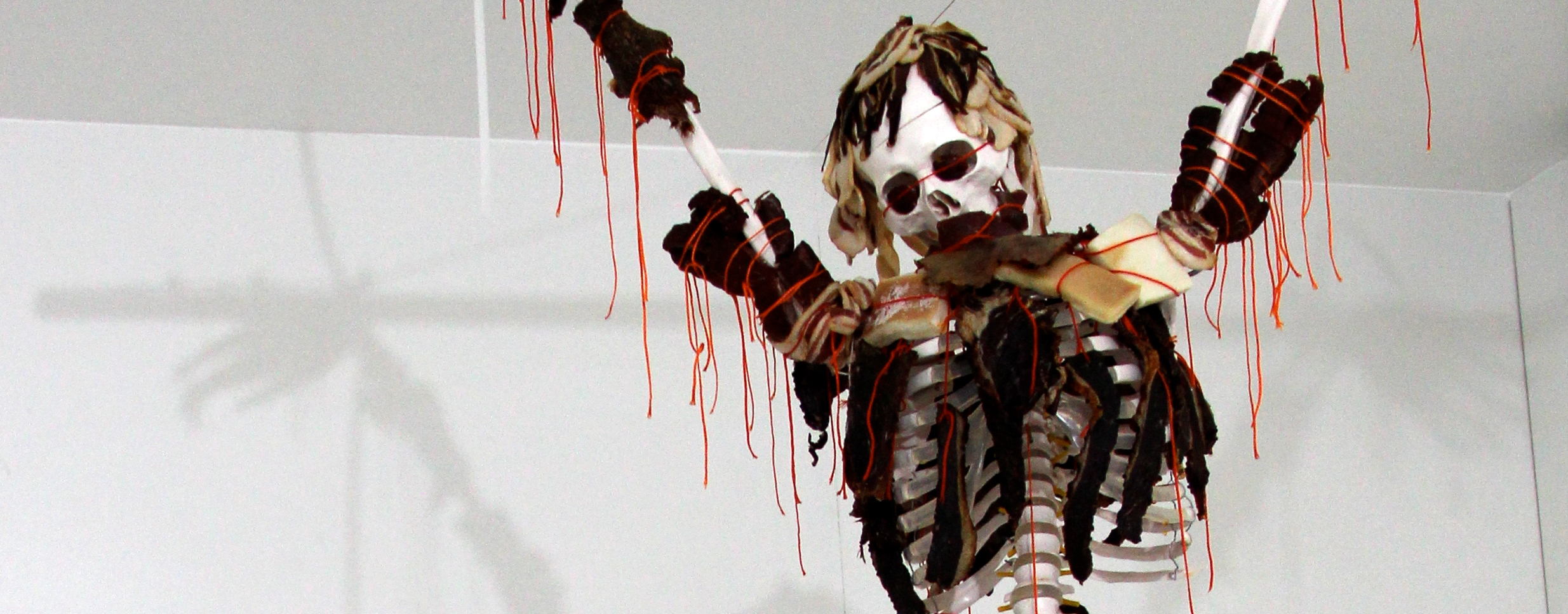 Matériaux : mélamine, viandes fumées (bœuf et porc), squelette de plastique, vinaigre, etc.