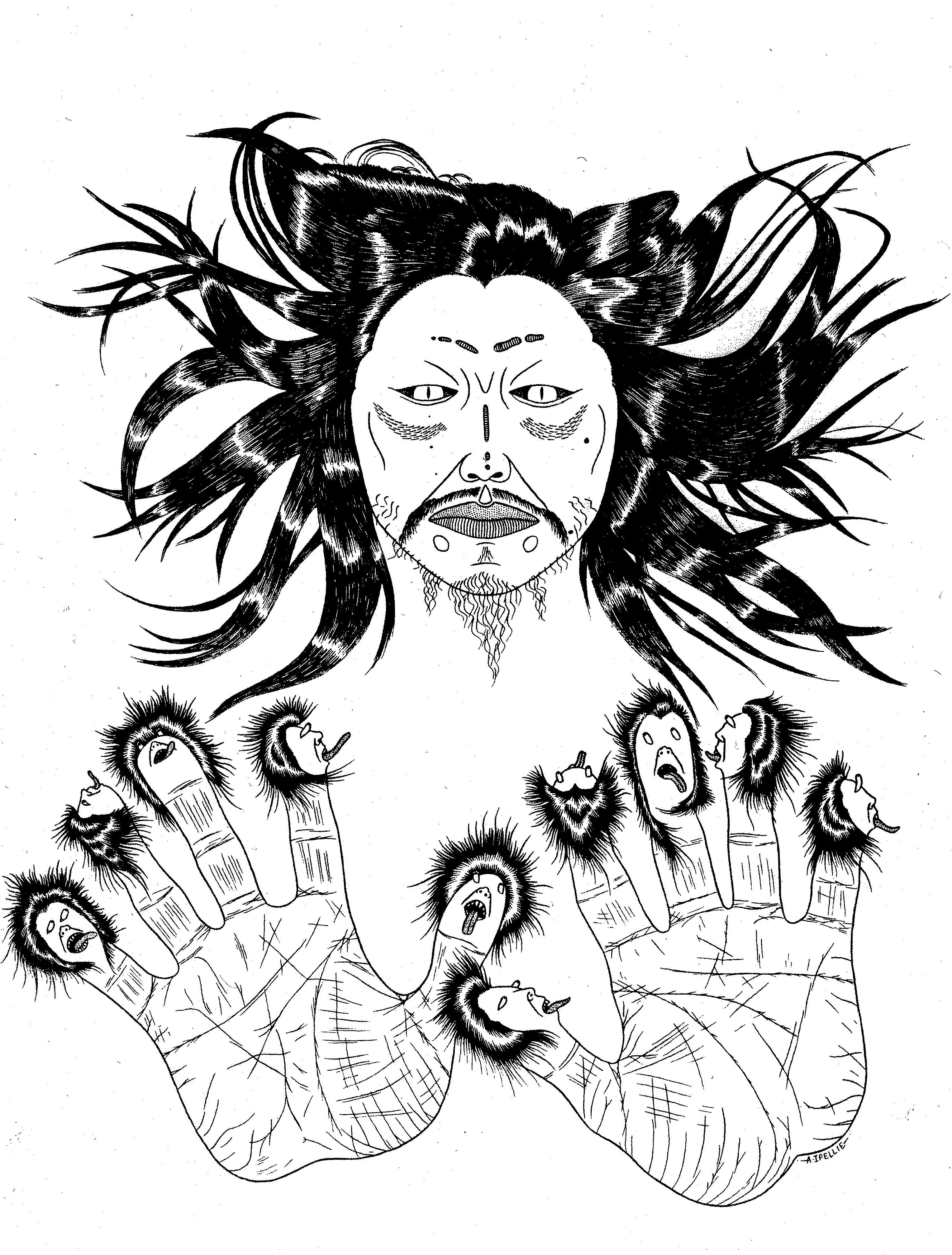 Alootook Ipellie, Self-Portrait. Inverse Ten Commandments (1993)