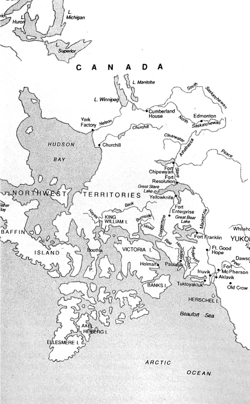 Carte reproduite dans Rudy Wiebe, Playing Dead. A Contemplation Concerning the Arctic, Edmonton, NeWest, 1989