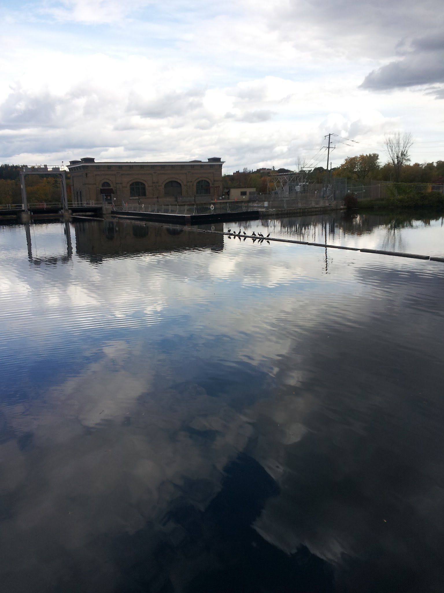 À ce titre, l’insertion de Voyage dans la collection du MBAC continue à creuser les registres de l’ironie, qui semble être le résultat commun de bien des traversées de l’histoire et de la mémoire. Dans les cadres de l’exposition commémorative de 2010 et de la réinstallation des parcours de la collection d’œuvres canadiennes et autochtones en 2017 (marquant le 150e anniversaire de la Confédération), l’œuvre se charge d’une nouvelle dimension esthétique. Voyage est devenu (au même titre que bon nombre d’œuvres religieuses, là gît aussi l’ironie) une trace décontextualisée de sa mise en installation originale et de la performance d’un processus de mémoire qui tient du lieu précis de l’installation de 1989. Ce lieu ne se limite pas seulement à l’espace de l’AGP, mais englobe également le territoire sur lequel l’œuvre est présentée. À l’AGP, Carl Beam installait Voyage dans une galerie située directement sur la rive de l’Otonabee. Le nom de ce cours d’eau a une origine anishnabée. Elle nous renvoie au poisson Tullibee, poisson à chair blanche, et elle nous rappelle que la rivière n’est pas uniquement un lieu pittoresque ou un mode de transport, mais aussi une source de nourriture — autre corps physique au service de ses communautés. On peut constater cette proximité entre la rivière et la galerie en se rappelant que le port d’accès orignal par lequel Voyage est rentré à l’AGP en novembre 1989 prolonge une rampe qui permet aux bateaux de plaisance d’être mis à l’eau dans l’Otonabee. La proximité des cours d’eau et du lieu d’exposition n’est pas anodine dans le parcours qu’a connu Voyage : elle intervient de nouveau en 1992 au Power Plant, autre institution située en bordure d’un plan d’eau, cette fois-ci sur la rive du lac Ontario dans l’ancienne zone portuaire de Toronto, connue aujourd’hui sous le nom de Harbourfront. À Ottawa, l’installation actuelle et assez spectaculaire de Voyage dans un atrium donnant sur la promenade Sussex — un espace qui lui permet, dans cette nouvelle itération, de bénéficier d’un éclairage naturel — fait tout de même rêver à la Gatineau (en algonquin, Te-nagàdino-zìbi, « la rivière qui achève notre voyage »), laquelle rejoint la rivière Outaouais un peu en amont de la côte surplombée par ce musée national — qui lui tourne le dos.