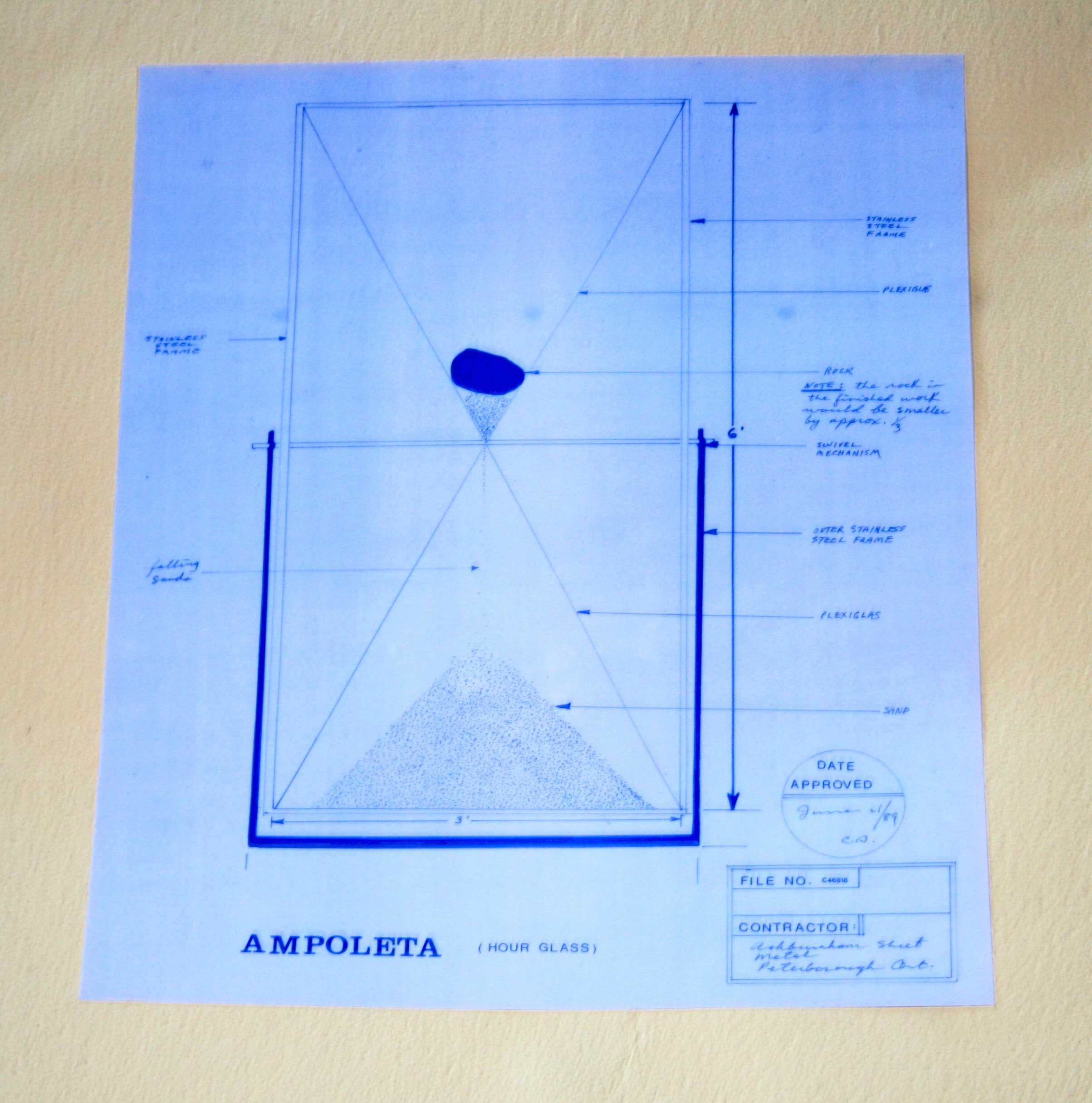 Pour articuler ce questionnement, Voyage dépendait en 1989 très précisément de ses conditions d’exposition en tant qu’installation — en tant qu’objet ancré dans un site qu’il modifiait, qui se réorganisait pour l’accueillir. L’œuvre, placée dans le premier et plus grand des trois espaces qui forment la grande galerie — espace qu’on nomme en anglais Bay, donc une baie, endroit parfait pour un navire, à moins d’être embouée comme c’était le cas à Hispaniola —, n’était éclairée que par quelques spots, offrait la présence spectrale dont témoignent encore les diapositives informelles que conserve l’AGP. Ann Beam, la veuve de l’artiste, possède un cliché montrant une autre perspective de la même salle, pris lors d’une rencontre entre Carl Beam et un groupe d’étudiants du secondaire réunis autour d’une deuxième installation, Ampoleta : prenant la forme d’un grand sablier construit à échelle humaine, c’est une autre figure de ce temps qui s’avère être un des matériaux conceptuels principaux de l’artiste. Par le choix du sème « ampoule », au lieu de « sablier », l’œuvre nommée Ampoleta fait référence à la construction humaine de la lumière comme moyen de signaler l’ampleur, si on veut, des limites humaines imbriquées dans leur représentation du temps, des recommencements éternels qu’il faut tout de même activer; ampoule, lumière comme unité de mesure ultime du temps et de l’espace. À quelques mètres de cet être naufragé, Voyage, que l’artiste a éclairé de manière si dramatique, Ampoleta nous aidait à comprendre la façon dont Carl Beam emploie l’espace de l’exposition pour parler des principes qui régissent l’univers et qui seraient les fondements ontologiques nécessaires à toute considération des thématiques incarnées dans le Columbus Project.