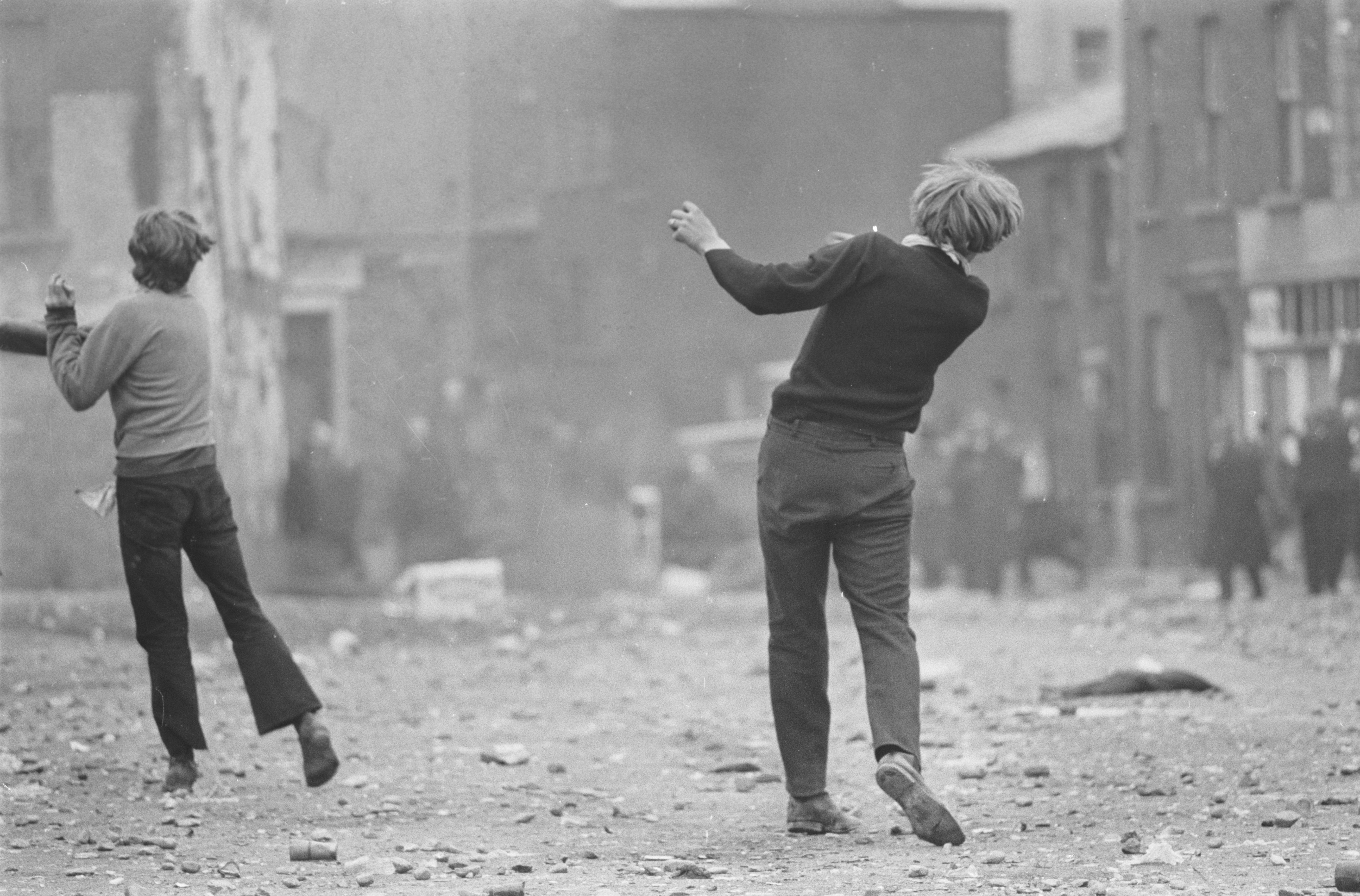 D’un point de vue général, et de façon absolument frappante, transparait dans l’ensemble de l’exposition le rôle fondamental des corps au sein des mouvements sociaux de lutte. Ce sont les corps qui occupent, incarnent, bougent, passent, expriment, représentent, s’exposent et sont réprimés. Et les gestes — expressions formelles d’animations intérieures puissantes — sont hérités, répétés et correspondent à travers les situations, au gré des déplacements de sens. Bien sûr, le deuxième volet, « Par gestes (intenses) », est en cela le plus éloquent. S’y répondent, entre autres, les poings levés de trois Black Panthers sur un cliché de Hiroji Kubota en 1969, ceux du mouvement autochtone Idle No More photographiés par Blaire Russel en 2012, et ceux des habitants de Guernica immortalisés en 1977 par Leonard Freed devant une reproduction de Guernica de Picasso — photographie posant d’ailleurs avec force la question de la puissance de captation et de mobilisation de l’art. De la mise en regard des photographies de manifestations réalisées par Gilles Caron à la fin des années 60 en Irlande et en France semble s’esquisser une sorte de chorégraphie commune. Cela est particulièrement frappant dans la symétrie de la gestuelle des deux jeunes hommes photographiés de dos en 1969 en Irlande du Nord, cliché d’ailleurs repris en couverture du catalogue général de l’exposition. Mais ces corps ne dansent pas, ils résistent, s’expriment et luttent dans des rapports de forces violents et immédiats. Le Livro de Carne du brésilien Artur Barrio rappelle à la mémoire du visiteur le risque sanglant de bien des soulèvements. En 1978, Barrio réalise un livre d’histoire qui serait fait de la chair du peuple brésilien, alors sous le joug d’une dictature militaire. L’œuvre est d’autant plus frappante qu’elle résonne, quarante ans plus tard, avec le retour de l’extrême droite au pouvoir.