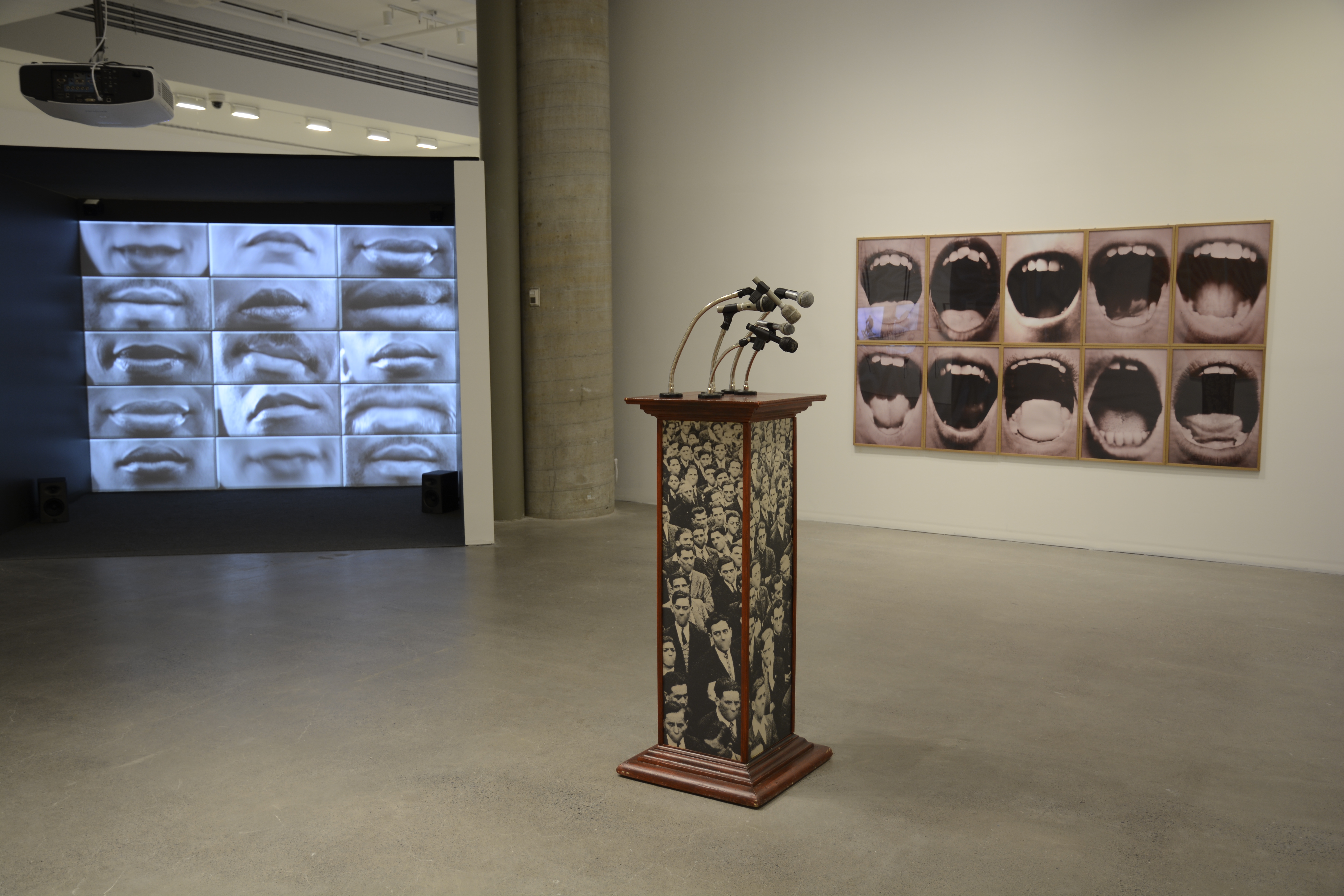 La richesse de cette programmation, la somme que représente le catalogue coédité par le Jeu de Paume et les éditions Gallimard, et la présentation de l’exposition au sein d’une galerie universitaire témoignent de son ancrage dans une entreprise de réflexion scientifique. Soulèvements s’inscrit très nettement dans le prolongement de l’importante recherche menée par Georges Didi-Huberman sur la représentation des peuples et la transformation des émotions collectives en énergie insurrectionnelle. C’est, par ailleurs, dans ce même projet que s’inscrivait le séminaire de trois jours « Oscillations du chagrin. Roland Barthes devant la femme qui pleure », donné par l’historien de l’art lors de sa dernière visite à Montréal à l’automne 20142. En effet, à l’occasion de sa réception d’un doctorat honoris causa de l’UQAM, Georges Didi-Huberman avait présenté une partie du travail qui allait composer, deux ans plus tard, l’ouvrage Peuples en larmes, peuples en armes (Minuit, 2016), sixième tome de sa série « L’Œil de l’histoire ». La première des trois séances, « Pleurs, peuples : Roland Barthes et les pleureuses d’Eisenstein. Les oscillations du motif émotif et les figures du peuple », portait sur l’épisode de lamentation puis d’insurrection populaire dans le port d’Odessa mis en scène en 1925 par Eisenstein dans Le Cuirassé Potemkine. Or, cette séquence constitue l’un des points nets d’articulation entre ce motif de la lamentation qui habitait, par exemple, l’exposition Atlas. Comment porter le monde sur son dos?, présentée par Georges Didi-Huberman à Madrid, Karlsruhe et Hambourg en 2011, et la puissance des résistances qui anime Soulèvements. Nombreux sont les ponts qui relient ainsi l’exposition à ce vaste chantier de recherche mené par l’historien de l’art depuis plusieurs années. Elle est soutenue par une érudition et une réflexion minutieuses qui transparaissent dans la finesse des textes présentant chaque salle. Loin d’être conclusive — il ne s’agit ni d’un répertoire de formes exhaustif, ni d’un bilan historique, ni d’une tentative de définition arrêtée du soulèvement —, l’exposition est pensée comme un état d’une recherche toujours en cours, qui se propose non de cerner mais d’ouvrir la réflexion.
