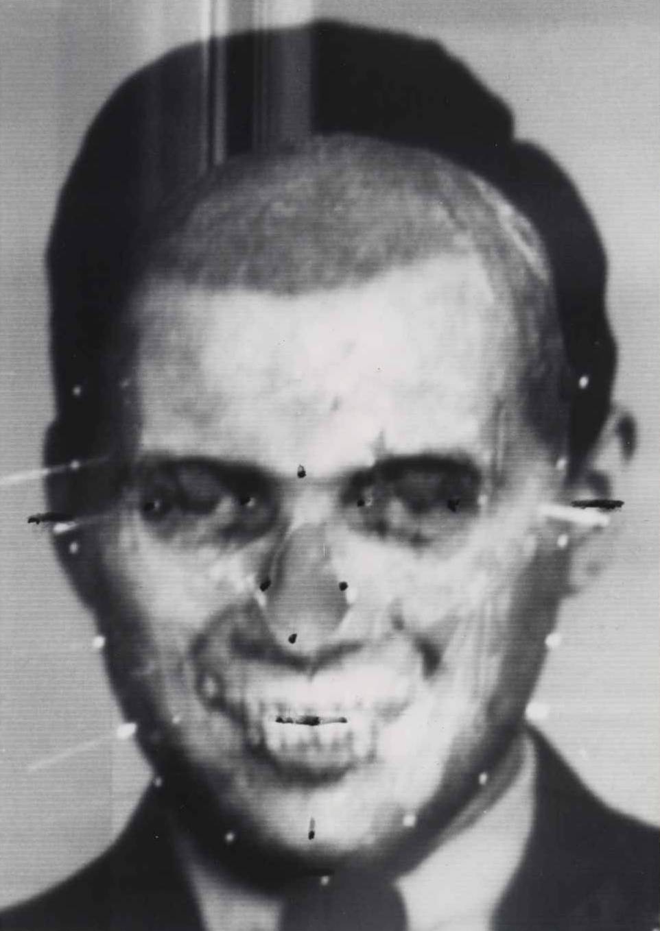 Dans Mengele’s Skull. The Advent of a Forensic Aesthetics (2012), Eyal Weizman et Thomas Keenan analysent le jugement des tribunaux concernant la reconnaissance du crâne de Josef Mengele durant le procès qui a eu lieu en 1985. Les nouvelles technologies ont joué un rôle décisif dans la reconnaissance du crâne et l’inculpation post-mortem de Mengele : la technique de superposition d’images a produit de nouvelles formes d’argumentation et de preuves. En 1977, le scientifique forensique et photographe amateur allemand Richard Helmer, en collaboration avec le scientifique Oskar Grüner, avait mis au point un système de superposition électronique d’images vidéo permettant l’identification d’un crâne. C’est cette technique qui a été employée dans le cas de Josef Mengele. Le système repose sur deux caméras montées sur des rails, l’une est focalisée sur le crâne et l’autre sur la photo du sujet présumé. Les signaux des deux appareils se mélangent, superposant les deux images pour produire une image hybride et translucide, qui, à son époque, fut présentée comme une preuve formelle. L’aspect du portrait, mi-défunt, mi-vivant, à la fois fantomatique et réaliste, faisait apparaitre le crâne comme une présence spectrale devant la cour (Keenan et Weizman, 2012: 38). La prosopopée effectuée par certains intervenants dans les tribunaux n’est plus simplement un geste de rhétorique : l’objet devient par l’intermédiaire de l’orateur, ici le scientifique, une sorte de super-objet.