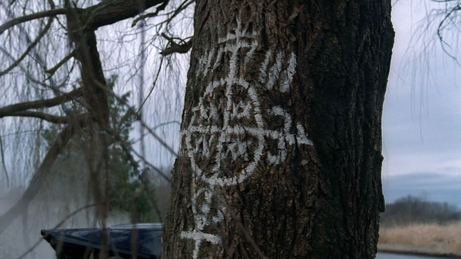 Mais revenons au début de l’épisode afin d’observer de quelle façon s’y déploient le folklore et les croyances. Le prologue s’ouvre sur le rituel matinal de la famille d’un soldat, manifestement malade, incapable de dormir, agressif, voire violent. Lorsque ses céréales se transforment en asticots, il court vers sa voiture. Sur la route, son rétroviseur lui renvoie soudainement le visage d’un cadavre en décomposition, cette vision le conduisant à emboutir sa voiture à grande vitesse dans un arbre. La caméra contourne l’arbre et révèle un symbole vaudou sur le tronc, plus tard identifié comme étant un « loco-miroir » : « the crossroads between the two worlds. The mirror in which a man must confront his true self. These… Marines… maybe they did not like what they saw. » (Gordon, 1995: 13 min 27 s) Lorsque Scully interroge la veuve du soldat, Robin, ses questions portent sur la santé mentale, mais aussi sur la conscience et sur les croyances du défunt :