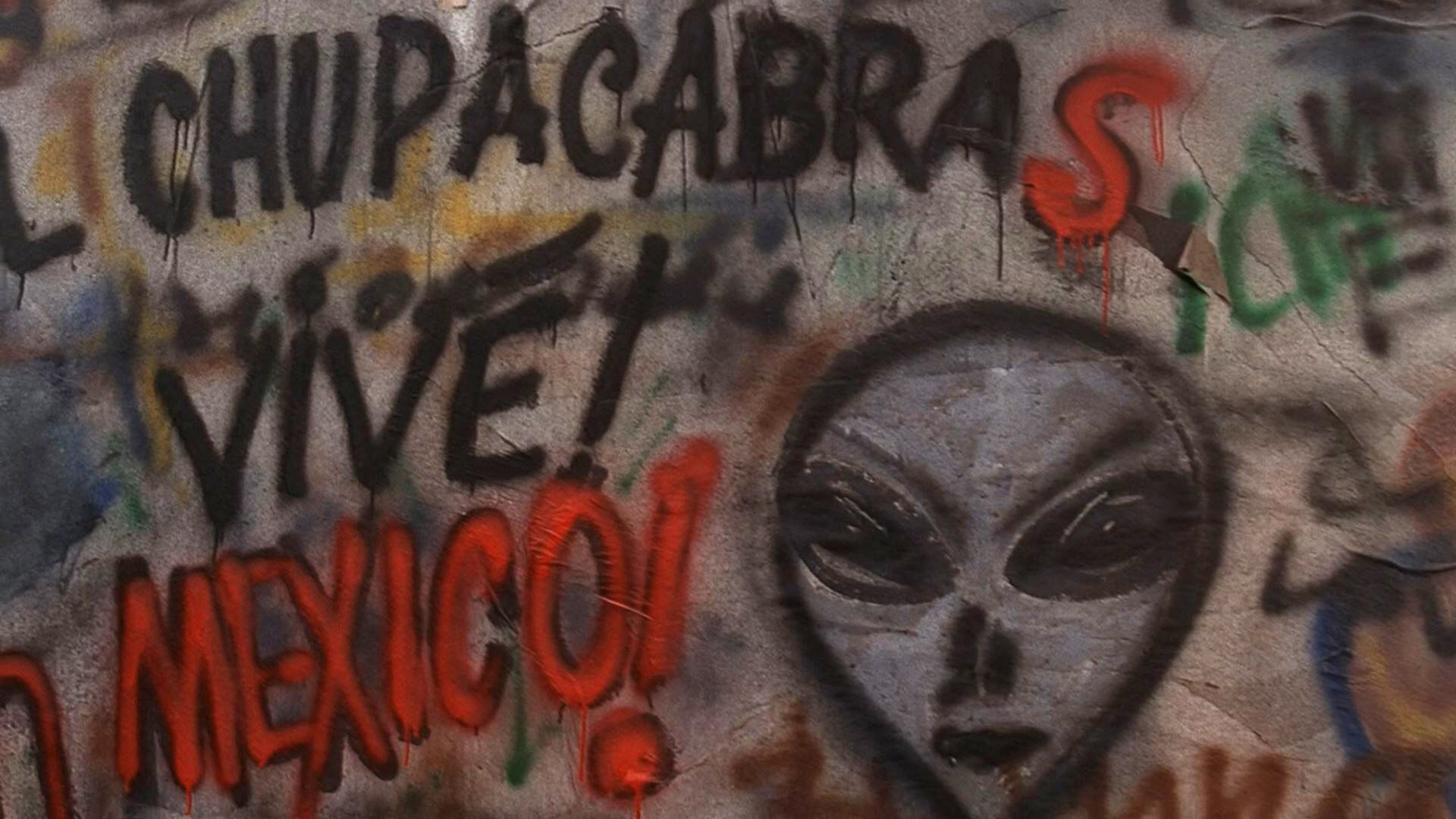 Ainsi est récupérée et transformée la légende. El Chupacabra n’a rien d’un conte populaire mexicain, c’est un mythe récent né à Porto Rico quelques années à peine avant l’épisode. La description courante d’El Chupacabra le place souvent du côté des histoires d’extraterrestres ou du simple coyote malade sans poil. Il s’agit d’une légende urbaine plutôt que d’un conte populaire ancestral. On le constate d’ailleurs dans un graffiti qui apparaît au milieu, puis à la fin de l’épisode, seule véritable représentation visuelle d’El Chupacabra de l’épisode.