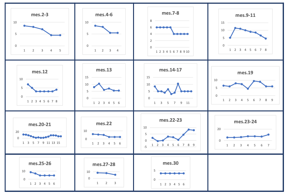 - pratiquement tous les segments sont singuliers et il y a très peu de ressemblances et d’échos entre les courbes individuelles, si bien qu’on est dans une logique de forte variabilité et dans la pensée de la différence poussée à l’extrême;