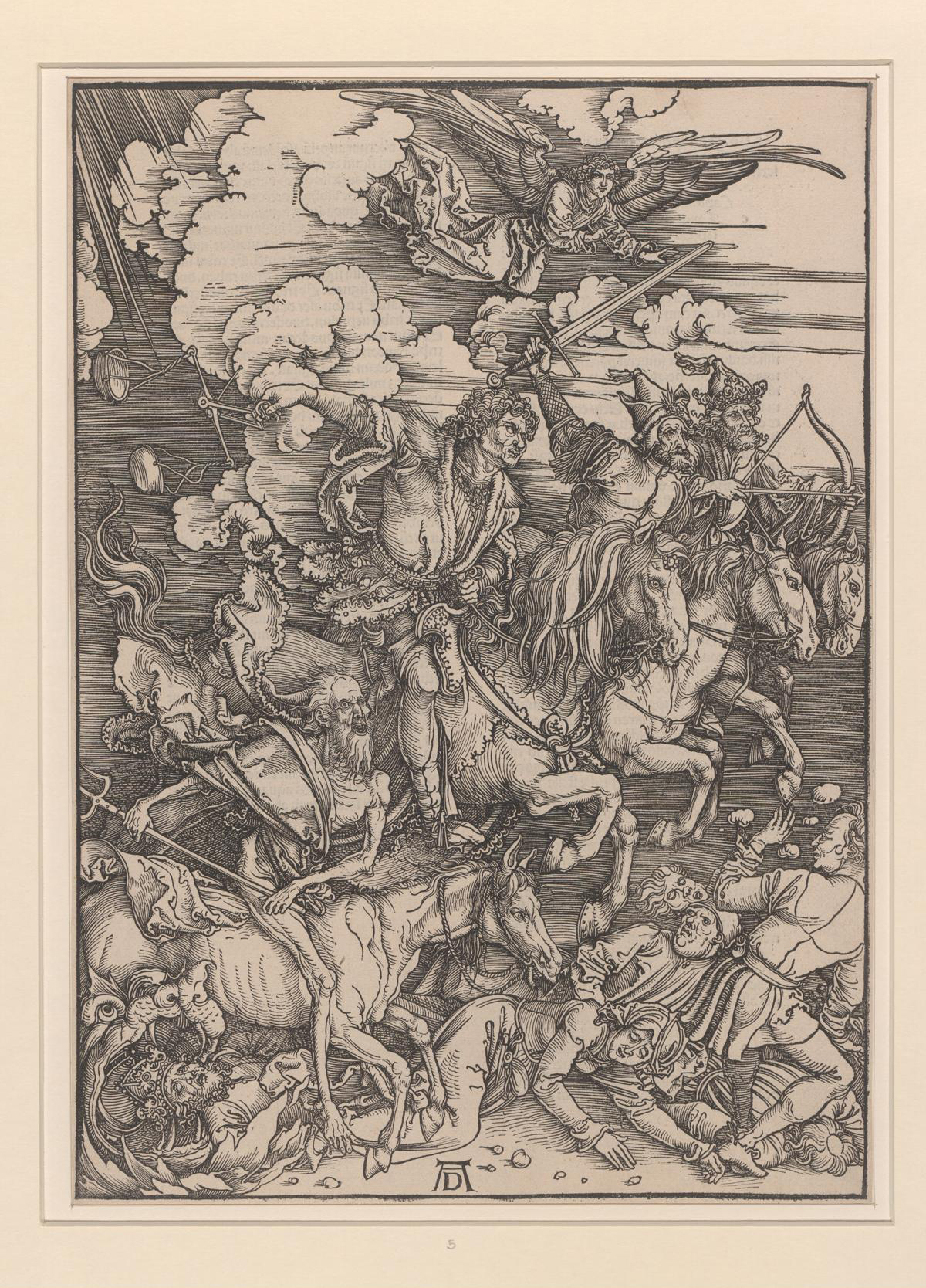On peut aussi penser la rationalisation du sérialisme comme un retour vers le mythe de l’Apocalypse. D’ailleurs, l’une des œuvres fictives créées par Adrian Leverkühn est une mise en musique de L’Apocalypse de Jean, l’Apocalypsis Cum Figuris, un oratorio inspiré des illustrations réalisées entre 1496 et 1498 par Albrecht Dürer. La symbolique de l’Apocalypse est essentielle dans le roman. Au chapitre XXXIV, Serenus fait une description précise de l’oratorio qui permet de faire le lien entre la musique, le diable et le mythe de Faust (1983 [1947]: 427). Le personnage principal est le testis, c’est-à-dire le Témoin. Son registre s’approche de la voix de castrat (449), pour appuyer le « Moi Johannès » qui est une référence au mythe du savant du XVIe siècle Jean Faust, toile de fond du livre et sujet de l’ultime œuvre d’Adrian Leverkühn. De manière globale et grâce au texte, l’œuvre « élargit le champ des possibilités musicales, du choral, du récitatif, de l’aria » (428) et Serenus explique de quelle manière les passages textuels sont choisis pour les images qu’ils évoquent. L’objectif du compositeur est de donner une impression d’étrangeté par une sorte de lien inconscient, ou magique : « un indicible attrait, sans parler d’apports plus lointains » (428). La mélodie se compose d’intervalles de quartes justes et de quintes, tandis que le texte est traité selon le caractère archaïsant du repons. Ce qui distingue cette pièce est, pour reprendre les mots de Serenus Zeitblom, un certain « atavisme ». Le narrateur, Zeitblom, est très critique envers l’utilisation de la technique du glissando, consistant à faire entendre le plus de notes entre deux notes consécutives. Il la juge particulièrement barbare (446) et l’associe au cri et non à la parole, ce qui nous rapproche, encore une fois, du démonique. Explicitement, il la dit « démoniaque », voire « anticulturelle » ou « antihumaine » (446). Ce sont les trombones qui utilisent cette technique, notamment lors de l’évocation des massacres perpétrés par les quatre cavaliers de l’Apocalypse. Elle est une rencontre entre l’ancien et le nouveau : ancien par sa symbolique, le cri; et nouveau par son emploi comme matériau musical, et non plus comme figuralisme ou ornement. Le glissando est amplifié par l’utilisation des timbales mécaniques et repris à la voix. Il prend alors tout son sens, appliqué à l’idée de destruction, de douleur et de mort (soleil noirci, saignement de la lune, etc.). L’apocalypse est la destruction qui précède la re-création.