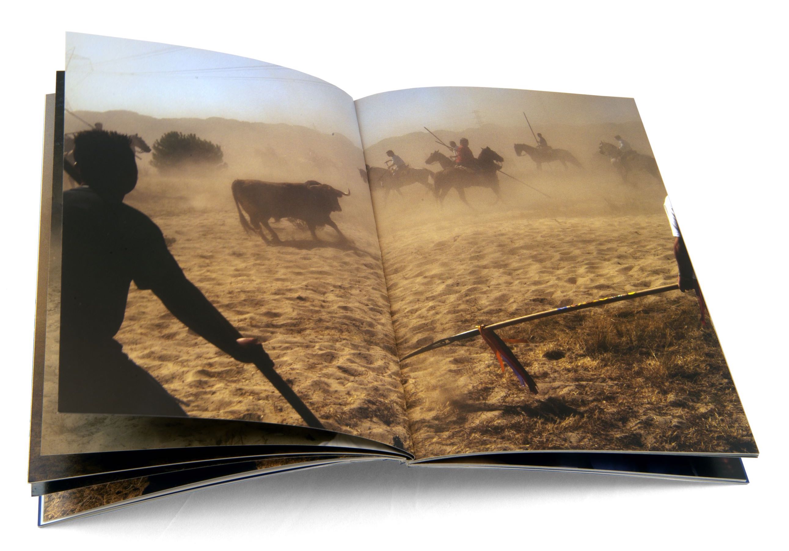 Parmi les photos reproduites dans la collection, un certain nombre est issu de reportages photographiques antérieurs de Clemente Bernad, qui trouvent ici une nouvelle vie éditoriale, tandis que d’autres ont été réalisés expressément pour la collection. Avec Carolina Martínez, le photographe explore le rapport entre texte et image en mettant en pratique l’idée de « binôme fantastique » théorisé par Gianni Rodari (1973) : « Nous voulons que photographies et textes soient des discours libres et autonomes, racontant des choses différentes et qu’en les mettant en contact de nouvelles lectures et impressions surgissent12. » (Bernad, 2015) En effet, même lorsqu’elles ont pu faire l’objet d’une commande spécifique, les images n’ont pas été réalisées en vue d’être associées avec le texte qui les accompagne dans la collection. Une particularité qui est soulignée par Patxi Irurzun, auteur du texte du premier volume de la collection :