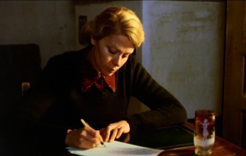 La mère écrit des lettres à un destinataire inconnu (un frère, un parent? un amant?), qu’elle va elle-même poster au village, sans que jamais une réponse ne lui arrive. Le film montre la rédaction d’une telle lettre, et ce qui frappe est le dédoublement de l’image et du son en même temps qu’on la voit écrire, on entend l’épistolière, dont les lèvres ne bougent pas, réciter le texte de sa lettre. En soi, un tel écart à la convention n’a pas trop d’importance, mais dans ce contexte de « parole flottante » il importe d’interroger la manière dont Erice filme ce lieu commun. La parole de la mère, dont on ne comprend pas tout de suite qu’elle correspond au texte d’une lettre, se fait entendre avant qu’on voie son personnage à l’écran : dans la bande-son, sa voix relaie les voix du film de Whale qui passent sans rupture de la salle de projection à un plan où l’on découvre pour la première fois le personnage silencieux du père, qu’on suit dans ses activités d’apiculteur. La voix de la mère acquiert ainsi quelque chose de fantomatique et son ancrage dans le réel ne sera pas totalement rétabli au plan suivant, où elle est filmée en train d’écrire.