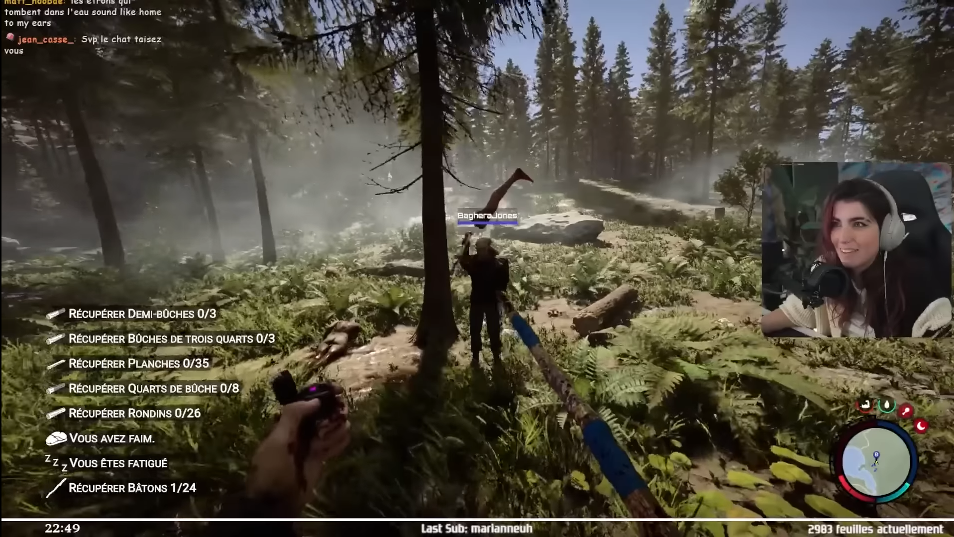 L’ensemble des exemples présentés jusqu’ici montrent donc le rôle spectaculaire du ratage ludique dans le streaming, la fonction qu’il exerce dans la sociabilité et dans l’expérience temporelle propres à ce format médiatique, ainsi que les formes de sa valorisation comme artéfact culturel (pouvant aller jusqu’à jouer un rôle dans la construction identitaire des streamers). Néanmoins, il est essentiel de conclure cette première partie de l’analyse en insistant sur le fait que cet attrait pour l’échec ne peut se résumer à un simple renversement iconoclaste des valeurs culturelles traditionnelles : si chaque action ludique était ratée, chaque moment de communication brouillé, chaque élément esthétique nié, le ratage ne remplirait plus sa fonction événementielle. Ce nécessaire équilibre entre norme et erreur est notamment rendu visible dans un clip mettant en scène une partie du jeu Sons Of The Forest (Endnight Games, Newnight, 2023) partagée par Horty_ et BagheraJones, lors de laquelle un glitch fait apparaître une jambe incongrue dans les mains d’un des avatars. Si les streameuses s’amusent du problème pendant un temps, BagheraJones doit finalement se résoudre à relancer le jeu pour pouvoir poursuivre la partie normalement.