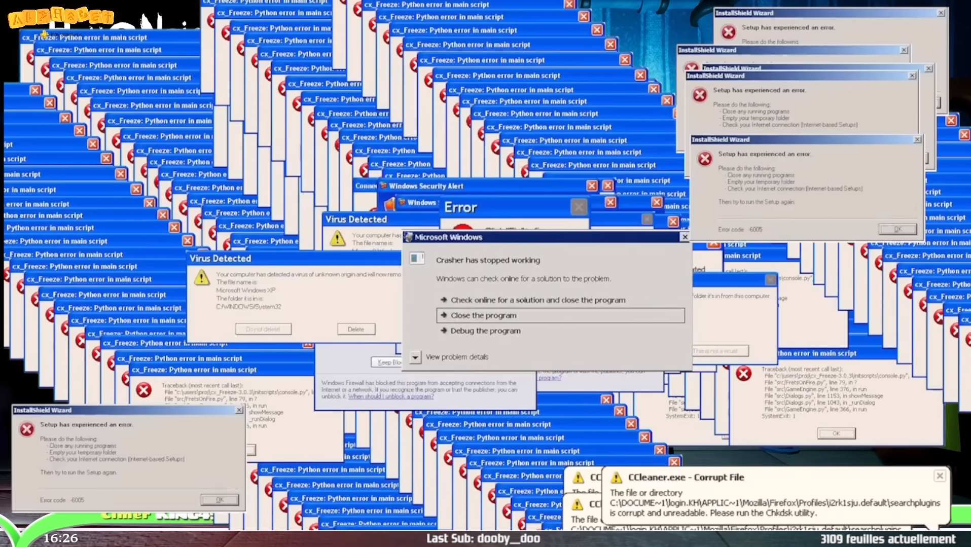 Alerte signalant un don et prenant l’apparence du « Windows Error Meme »